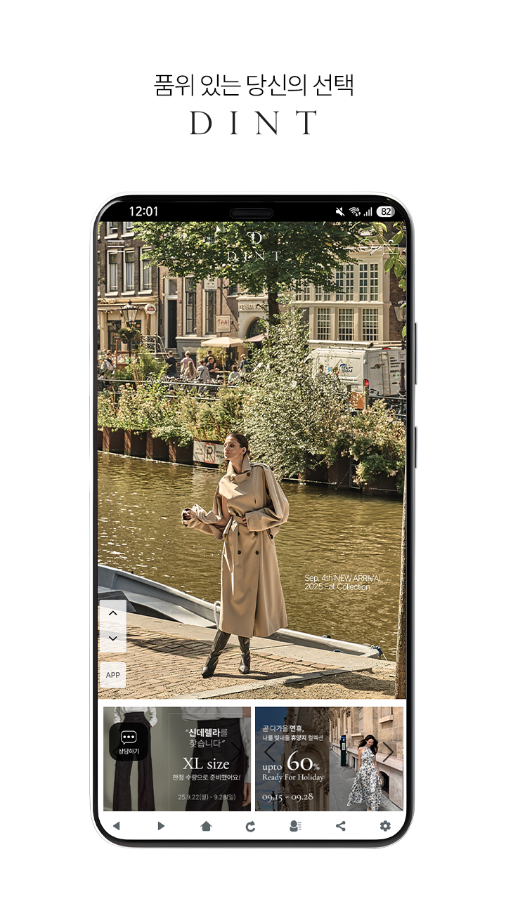딘트 쇼핑몰 앱은 패션 트렌드에 민감한 사용자들에게 최적화된 모바일 쇼핑 경험을 제공합니다. 언제 어디서든 손안에서 딘트의 모든 컬렉션을 탐색하고, 자신만의 스타일을 완성할 수 있도록 돕는 강력한 도구입니다. 특히, 모바일 환경에 특화된 직관적인 인터페이스와 사용자 친화적인 기능들은 쇼핑의 즐거움을 한층 더 높여줍니다. 신상품 알림부터 개인 맞춤형 추천까지, 사용자가 원하는 정보를 적시에 제공하여 효율적인 쇼핑을 가능하게 합니다.