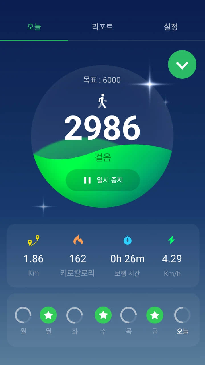 - **정확한 걸음 수 측정 및 활동량 기록**: 스마트폰 내장 센서를 활용하여 사용자의 걸음 수를 실시간으로 정확하게 측정하며, 일별, 주별, 월별 활동량 통계를 제공하여 자신의 운동량을 한눈에 파악할 수 있도록 돕습니다.